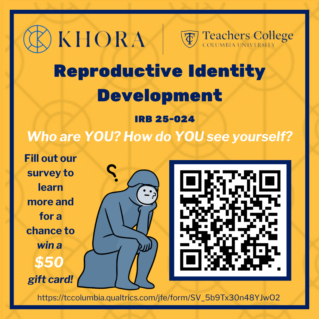 We are exploring how reproductive experiences shape who we are. At the Khora Lab, our studies focus on identity, wellbeing, and the life transitions related to parenthood. By sharing your experiences, you’re helping to contribute to our research, improve support systems, and inform how society relates to reproductive health matters.